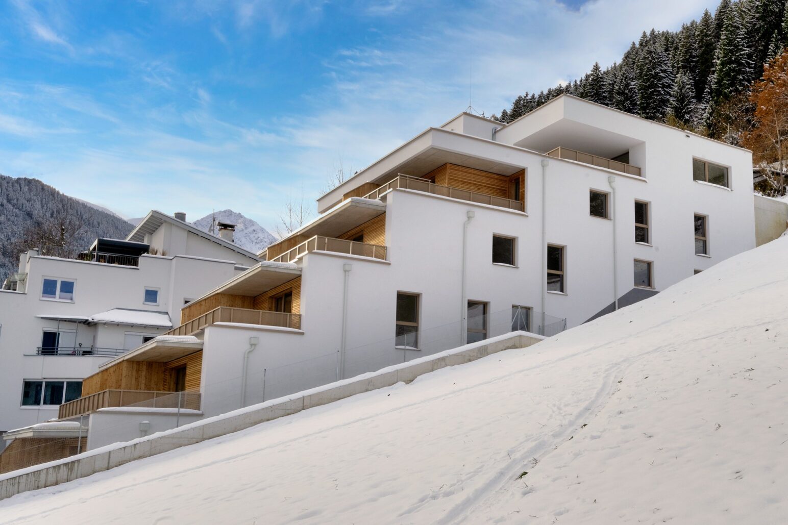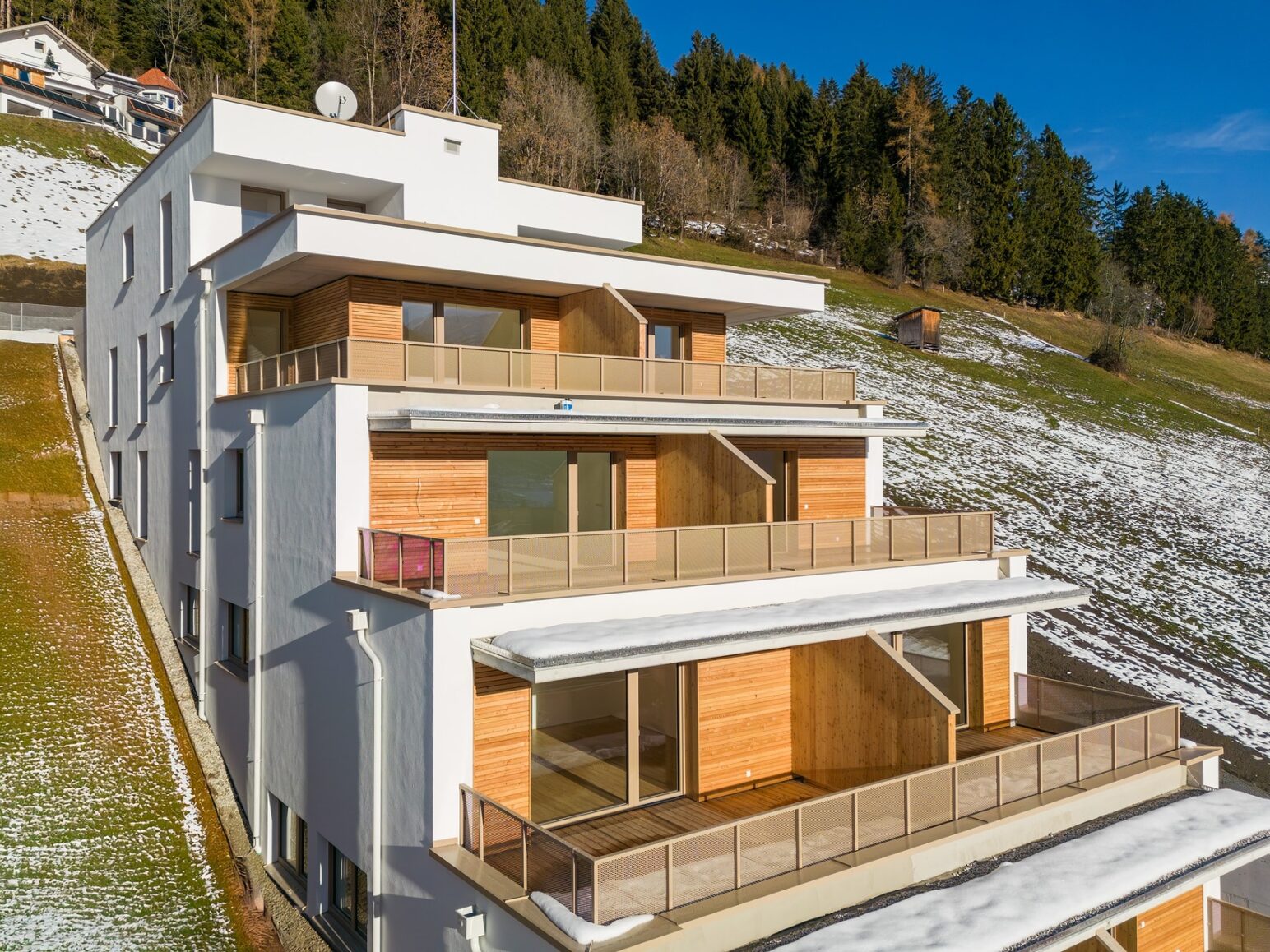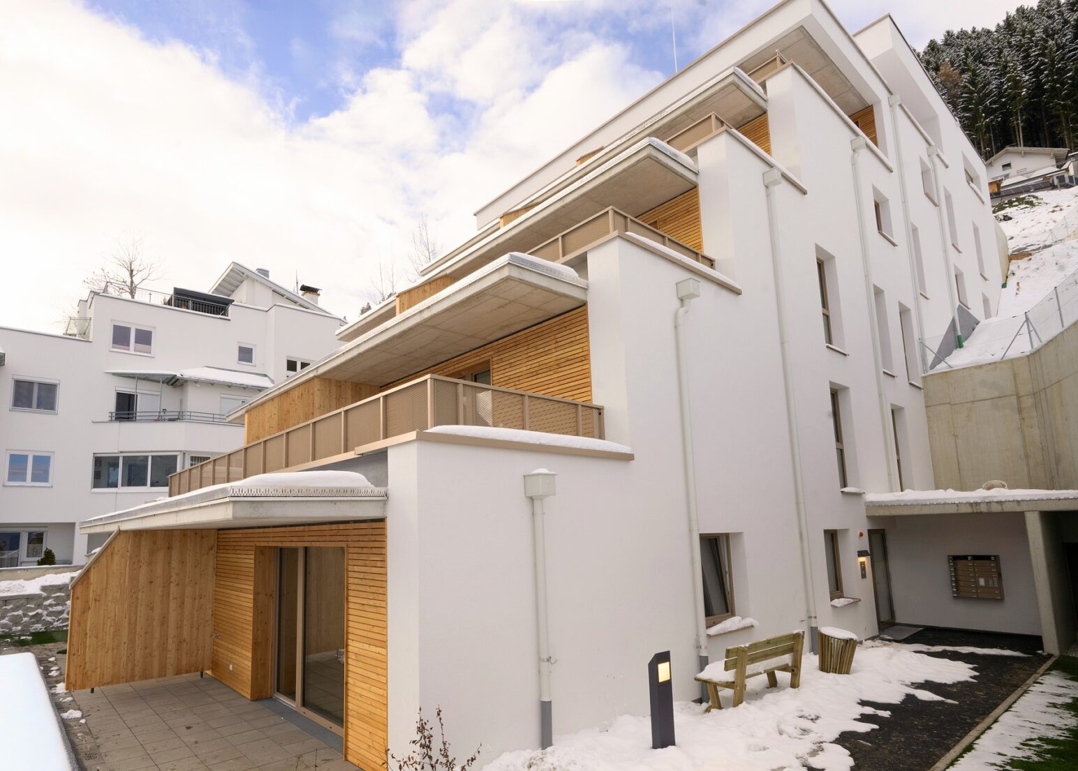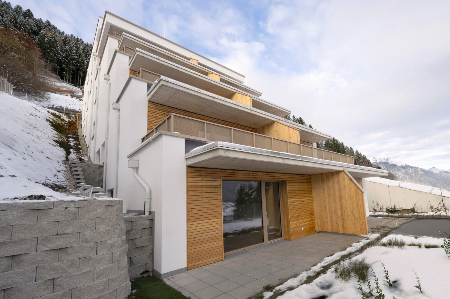 Das Projekt in Oberperfuss wurde mit dem Büro Schafferer Architektur umgesetzt, die Wohnanlage dabei terrassenartig in die bestehende Umgebung platziert. Sämtliche Wohnungen sind nach Süden ausgerichtet. Auch die Ausstattung ist mit Komfortlüftung, Parkettböden und Fußbodenheizung qualitativ sehr hochwertig.