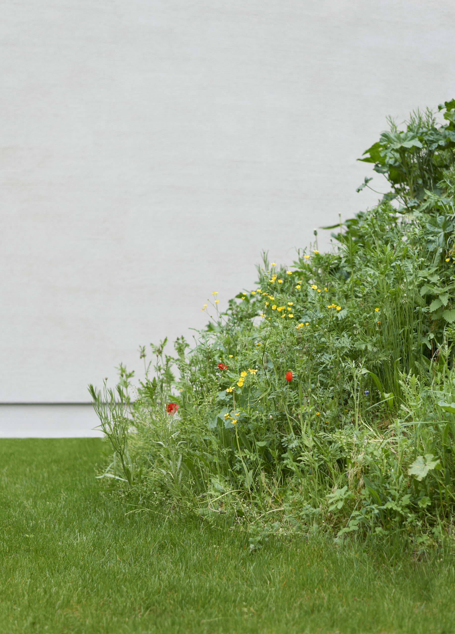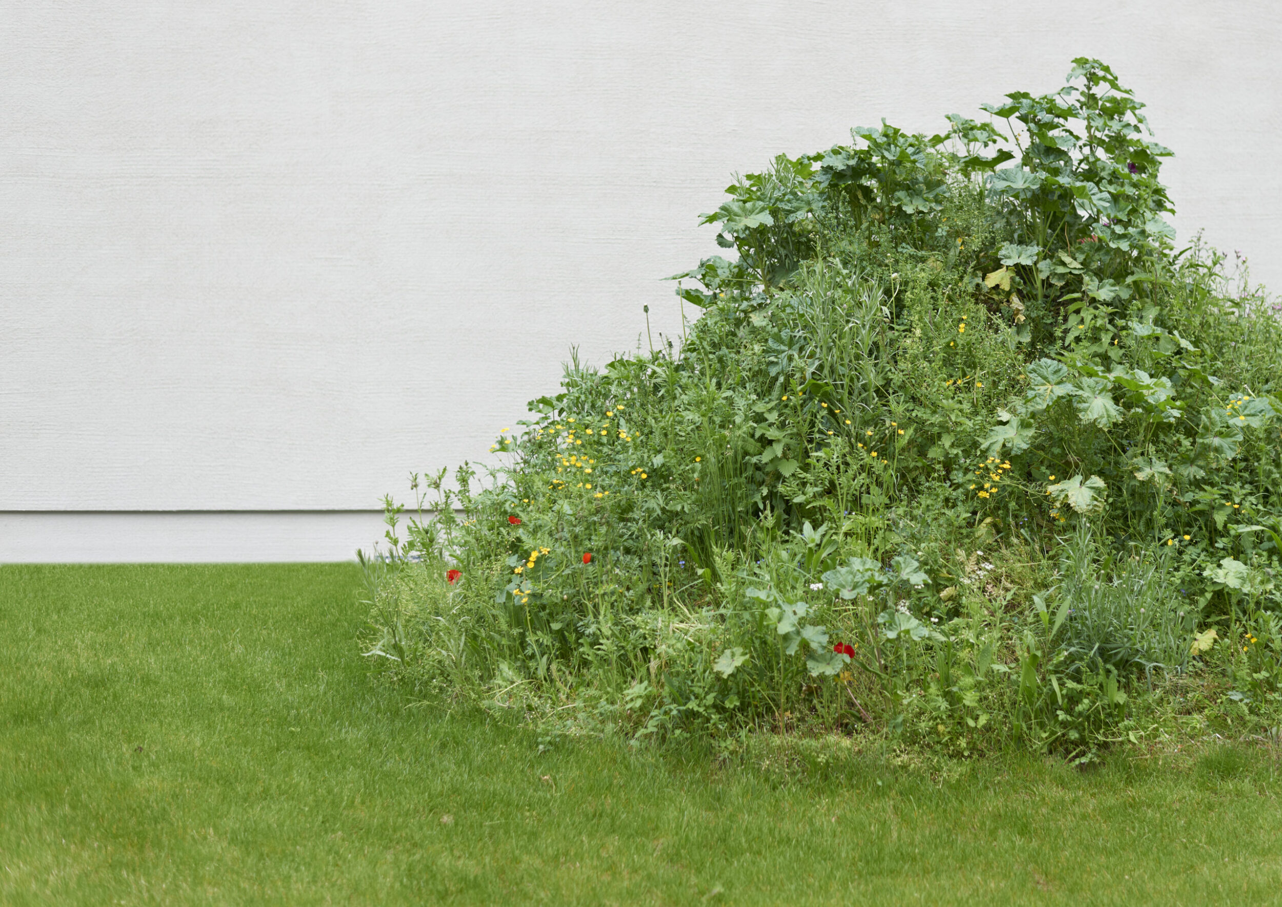 Dieser mit Johanniskraut bedeckte Erdhügel versucht, den Ort einer Abwesenheit zu kennzeichnen, um Geister aus der Vergangenheit heraufzubeschwören und auch eine historische Wunde zu heilen. Wir alle wissen, dass diese Pflanze, Sonnenmetapher und Symbol des Feuers, für magische und medizinische Zwecke verwendet worden ist. Wir wissen, dass sie zur Abwehr unerwünschter Geister eingesetzt wird, zur Linderung der Schmerzen menstruierender Körper, zur Förderung des Schlafs und zur Milderung von Ängsten und Melancholie. Diese Pflanze verbindet uns auch mit den Jahreszeiten und verweist durch ihr Blühen auf den längsten Tag des Jahres, jenen Tag, der uns in unserem Kampf gegen die Dunkelheit einen — immer vorläufigen — Sieg schenkt.