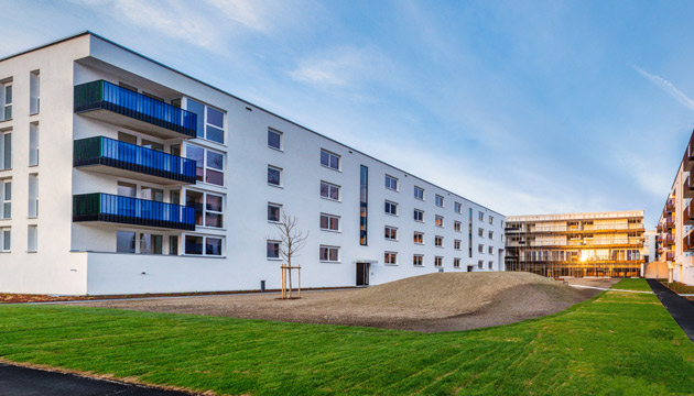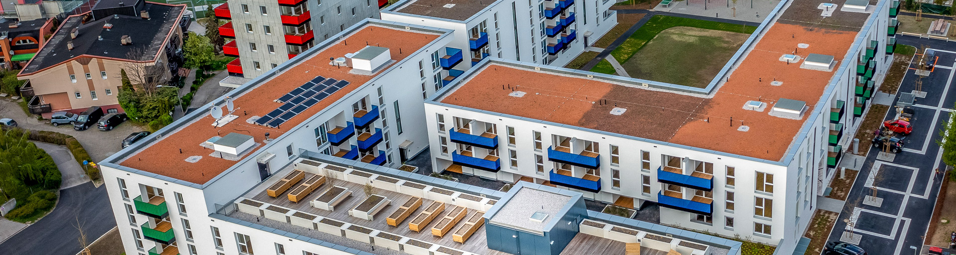 Die Wärme- und Energieversorgung erfolgt klimafreundlich über einen Fernwärmeanschluss und eine Photovoltaikanlage am Dach. Die Komfortlüftung versorgt die Wohnungen kontinuierlich mit frischer Luft.