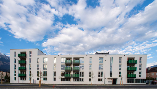 Die Wohnanlage im Passivhausstandard wurde nach den Plänen des Architekturbüros Obermoser arch-omo ZT GmbH errichtet und ist der zweite Bauabschnitt des Reconstructing-Projekts „Südtiroler Siedlung Pradl Ost“.