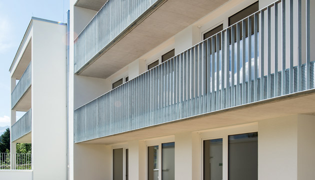Eine planerisch spannende Aufgabe stellte sich bei diesem Bauprojekt für das Architekturbüro scharmer-wurnig-architekten ZT gmbh. Dies deshalb, da auf dem zu bebauenden Grundstück „Labnergründe“ ein beachtlicher Höhenunterschied von ca. 18 Metern in Nord-Süd-Richtung zu überwinden war. Scharmer-wurnig verteilte die zwölf Eigentumswohnungen auf zwei Baukörper, die über eine gemeinsame Tiefgarage erschlossen wurden. Die Zufahrt verläuft entlang der Äusseren Embergstraße.