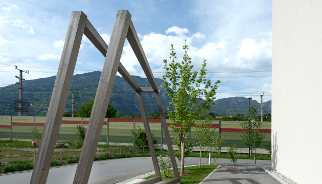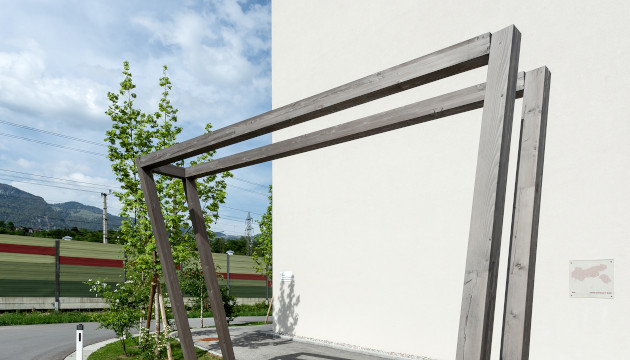 Anna-Maria Bogner setzte sich intensiv mit den geografischen, historischen und lokalen Gegebenheiten des Riedmann-Areals auseinander. Ihr Objekt ist ein Versuch die interdependente Verschränkung von Raumwahrnehmung, kognitiver Konstruktion von Raum und dessen Gestaltung erlebbar zu machen.