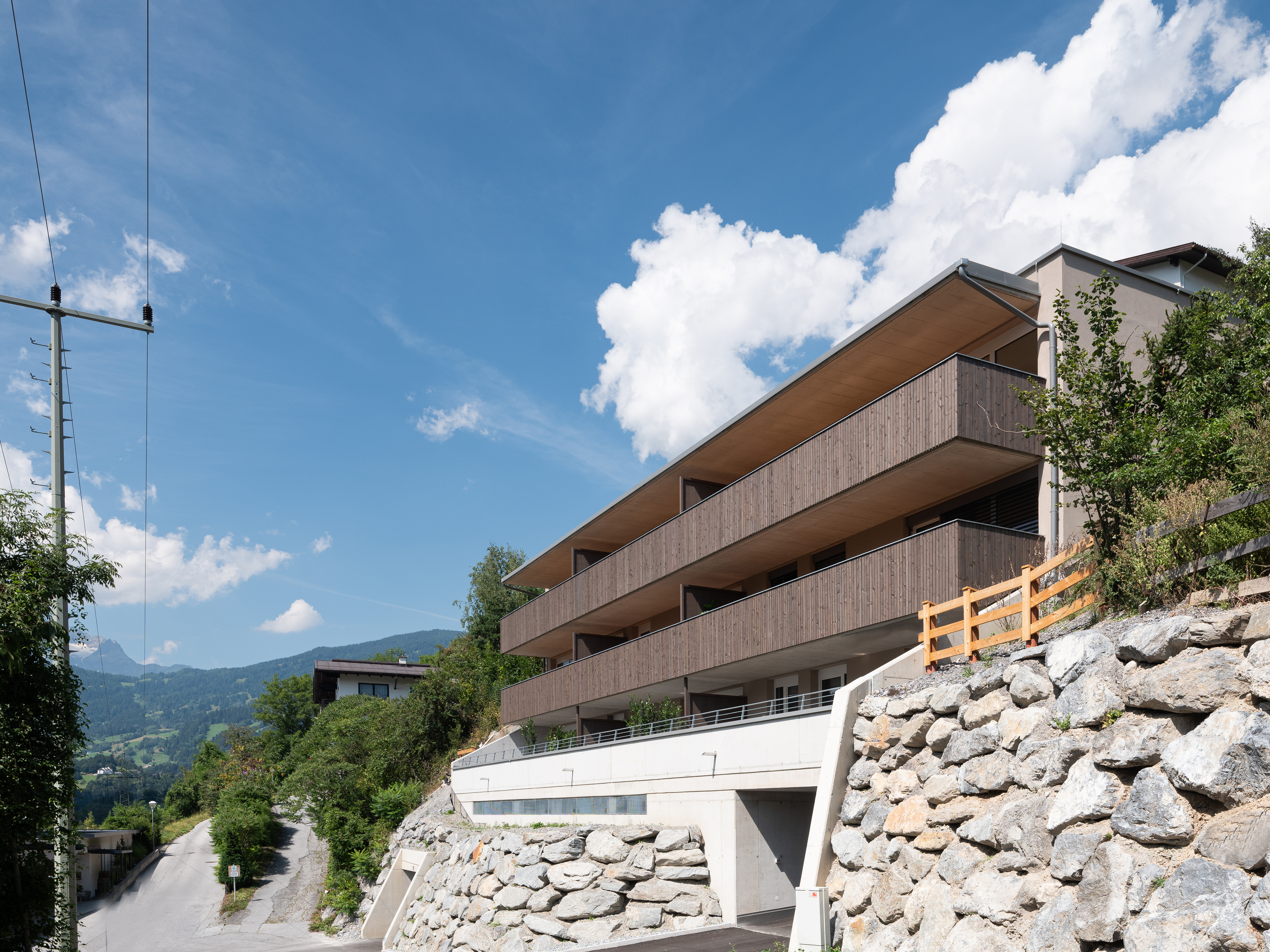 In Landeck, Prandtauersiedlung, wurde ein Wohnbau mit 11 Eigentumswohnungen samt Tiefgarage errichtet. Es entstanden 2-Zimmer, 3-Zimmer und 4-Zimmer Eigentumswohnungen aufgeteilt auf zwei Baukörper.