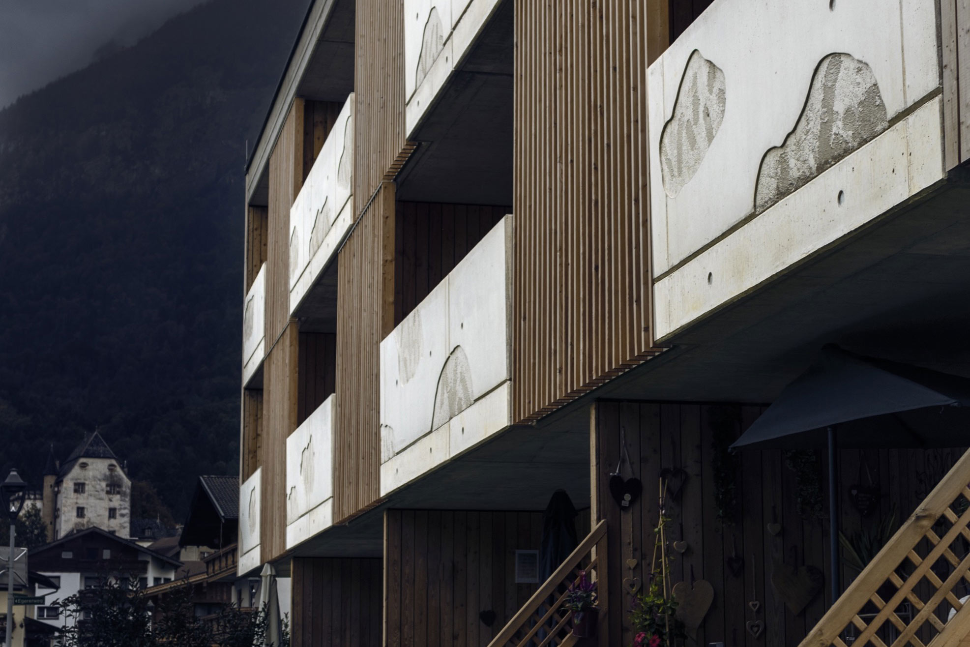 Stefan Klampfer orientierte sich bei seiner künstlerischen Auseinandersetzung mit der Gestaltung der Balkonelemente der Wohnanlage in Langkampfen am örtlich gelegenen Nasenbach.