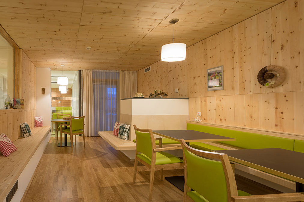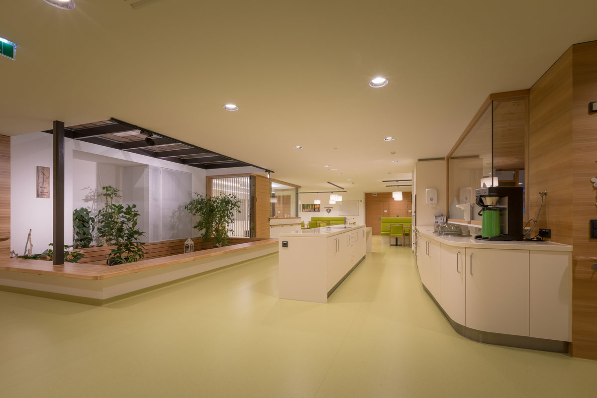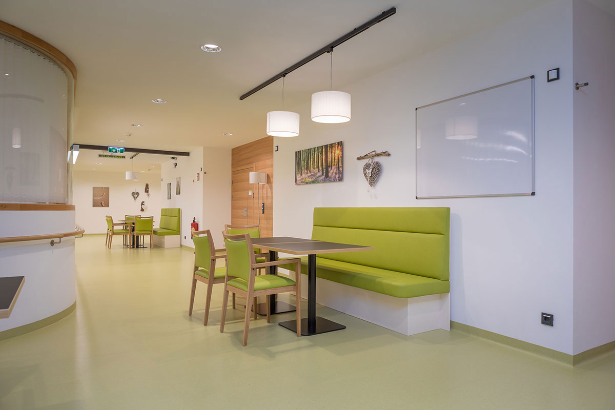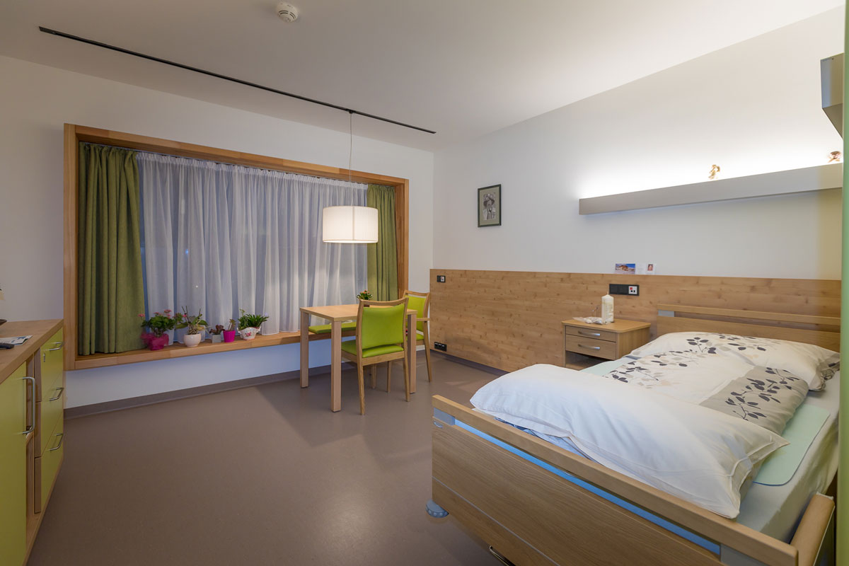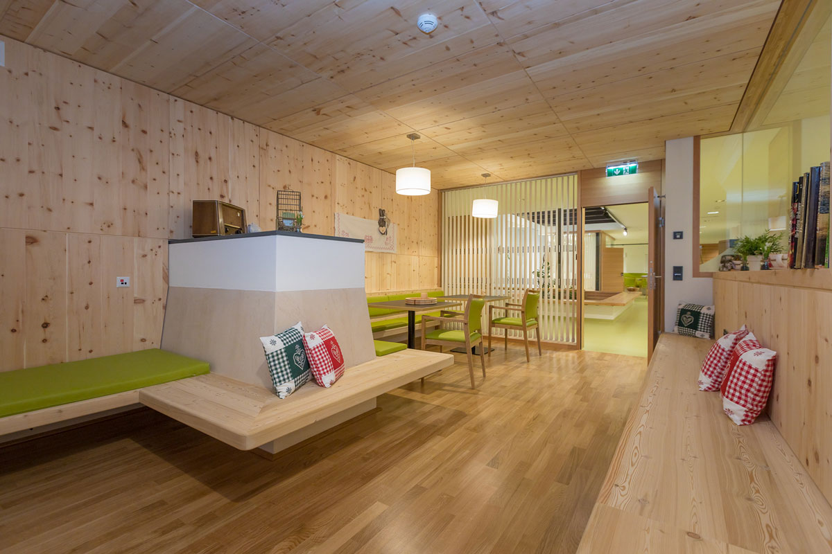 Für die Pläne zeichnet das Innsbrucker Büro Scharmer-Wurnig als Sieger eines Architektenwettbewerbs verantwortlich. Das kompakte Gebäude wurde im bewährten NHT-Passivhausstandard ausgeführt. Im Erdgeschoß sind die Allgemeinräume wie Küche, Wäscherei sowie ein Café untergebracht. Auch die Räumlichkeiten des Sozialsprengels sind dort angesiedelt.