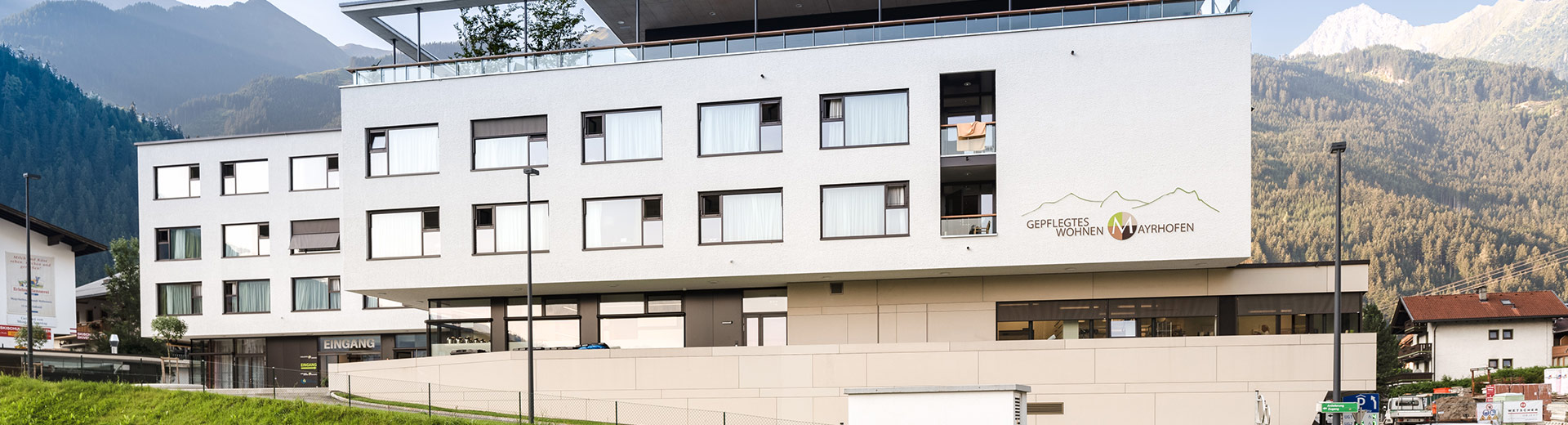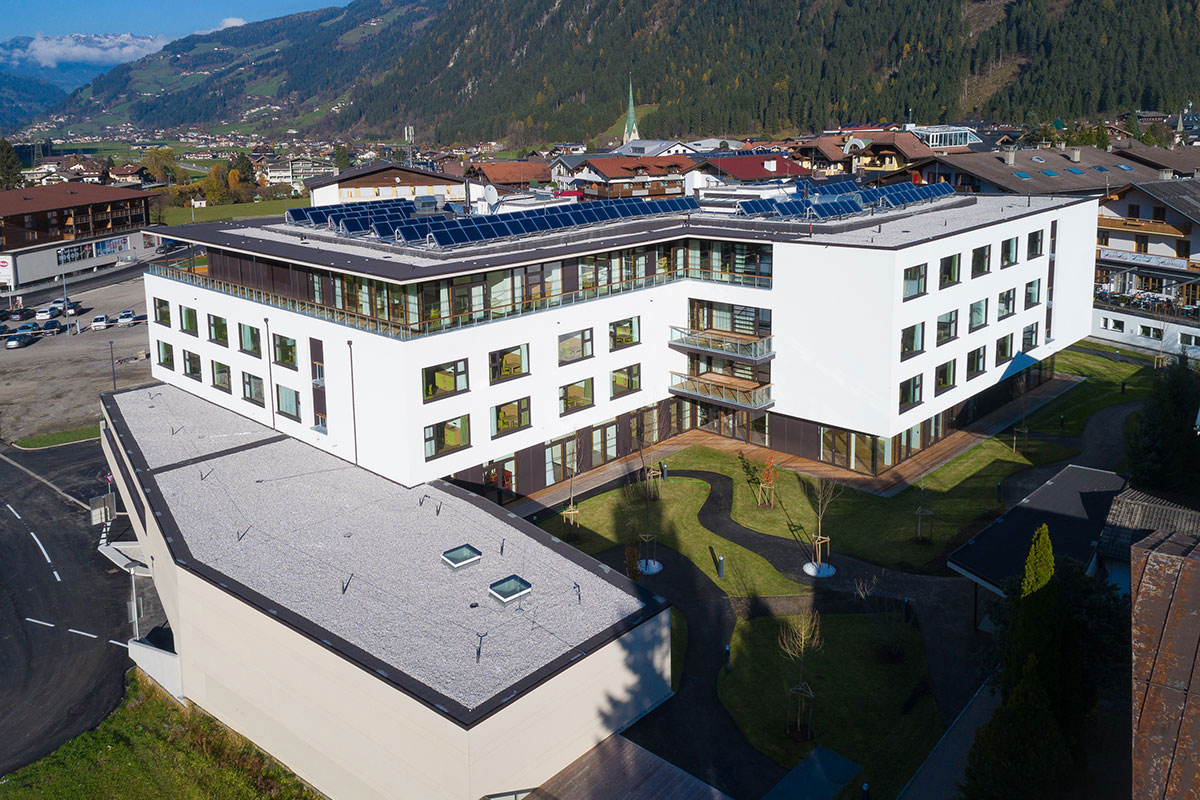 Die NEUE HEIMAT TIROL hat in Mayrhofen ein neues Sozialzentrum mit 80 Pflegebetten, Räumlichkeiten für den Sozialsprengel und Tagespflege sowie eine Zentralgarage für die Gemeinde errichtet.
