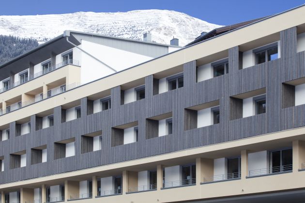 Die NEUE HEIMAT TIROL errichtete in Fiss in einer Bauzeit von nur sieben Monaten ein neues Mitarbeiterwohnhaus mit 32 Wohnungen für Dienstnehmerinnen und Dienstnehmer und einem Fitnessstudio samt Tiefgarage.