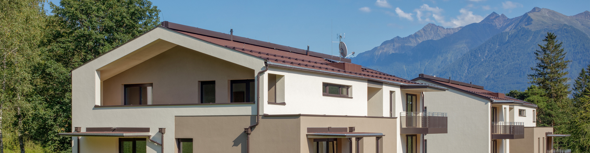In Obsteig, Langgarten, 1. Bauabschnitt errichtete die NHT eine Wohnanlage im Passivhausstandard mit 16 höchstgeförderen Mietwohnungen samt Tiefgarage.