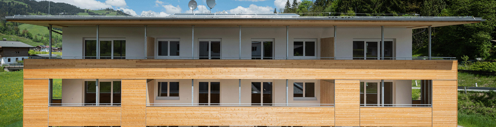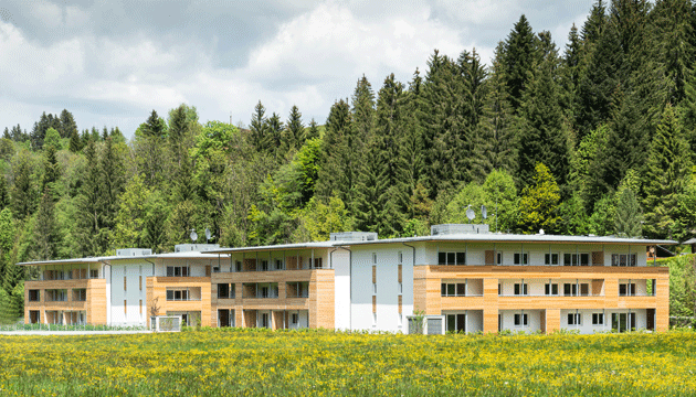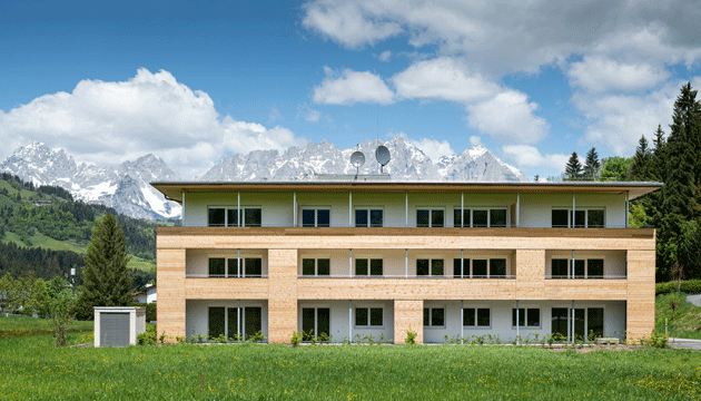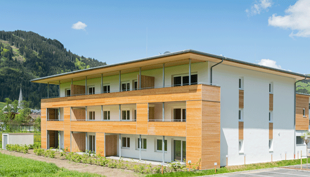 Die NEUE HEIMAT TIROL errichtete in Reith bei Kitzbühel – Bichlach eine Wohnanlage mit 18 Eigentumswohnungen sowie 20 Mietwohnungen samt Tiefgarage.