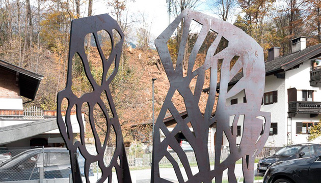 Wenn Menschen miteinander in Beziehungen treten und die entstandenen Beziehungen dann pflegen, dauert das seine Zeit. Daher wähle ich als Material Cortenstahl. Seine besondere Eigenschaft, im Laufe der Zeit eine an die lokalen Witterungsverhältnisse angepasste Patina zu entwickeln, symbolisiert diese Zeit. Je länger dieser Prozess dauert, umso robuster und hiesiger bildet sich die Patina der Skulptur aus.