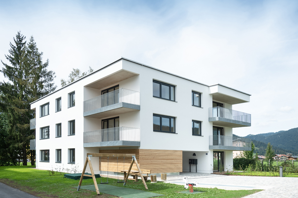 Die NEUE HEIMAT TIROL errichtete in St. Johann am Oberhofenweg eine neue Wohnanlage mit insgesamt 41 Wohnungen (davon 15 objektgeförderte Eigentumswohnungen und 26 Mietwohnungen mit Kaufoption) samt Tiefgarage.